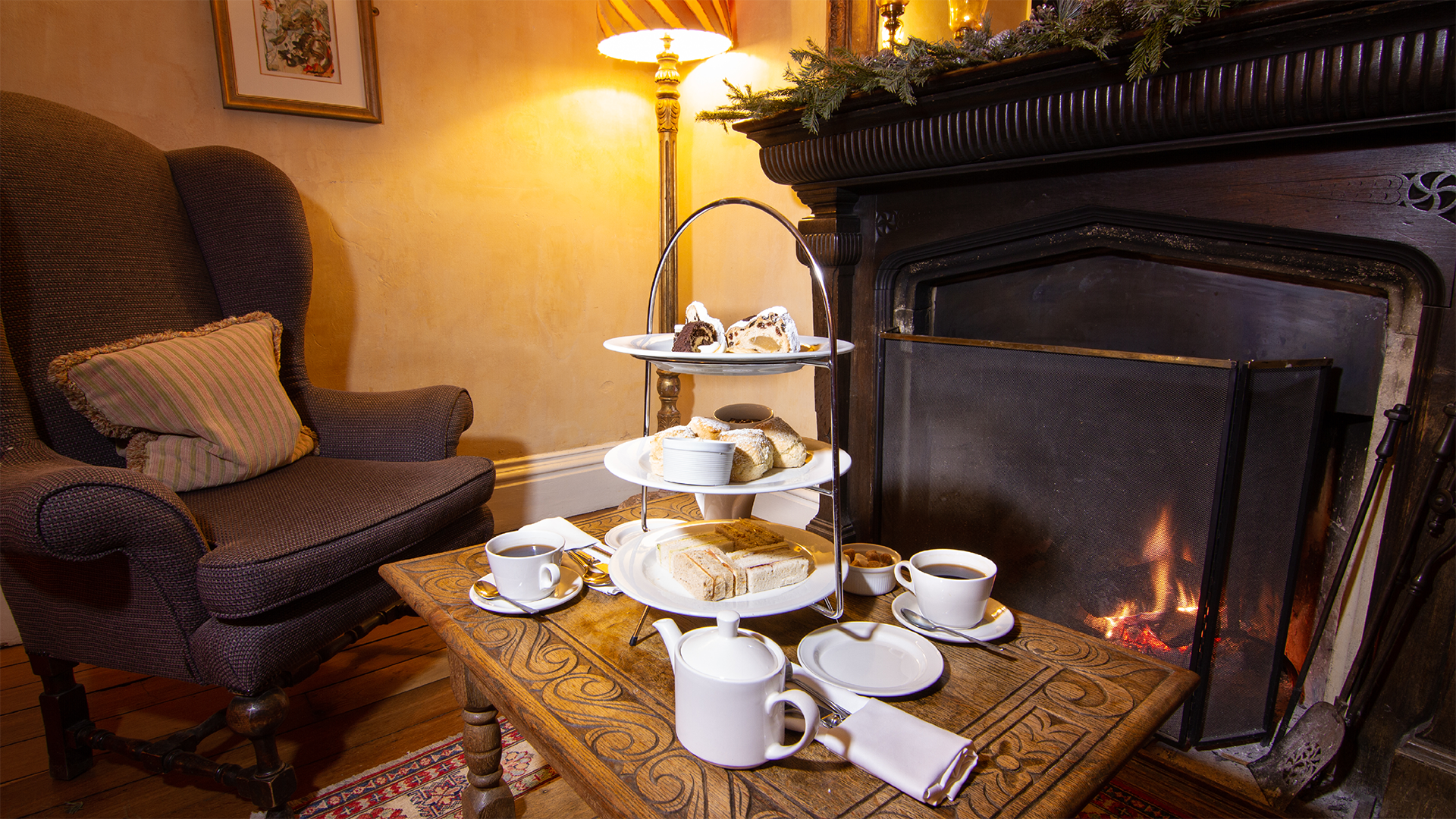 Begin the day with breakfast and a stroll around our gardens. Join us for a five course traditional Christmas lunch with all of the trimmings, a glass of Champagne and canapes. Afterwards settle in one of our lounges with coffee, tea and mince pies. During the evening, cosy up to the roaring fire and enjoy our delicious festive buffet which will be available throughout the evening.